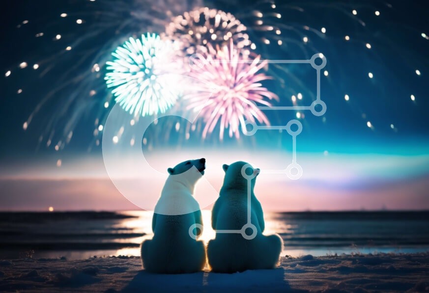 Υπάρχει δυνατότητα προσωποποίησης με δική σας φωτογραφία και προσαρμογής διαστάσεων κατόπιν παραγγελίας. Το συγεκεριμενο puzzle παρουσιαζει Αυτή η εικόνα παρουσιάζει δύο πολικές αρκούδες να κάθονται στην παραλία, απολαμβάνοντας μια επίδειξη πυροτεχνημάτων στον ουρανό. Οι αρκούδες κοιτάζουν ψηλά τα πυροτεχνήματα με μια αίσθηση απορίας και δέους. Η παραλία είναι αμμώδης με τα κύματα να σκάνε στο βάθος. Είναι μια όμο