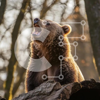 Υπάρχει δυνατότητα προσωποποίησης με δική σας φωτογραφία και προσαρμογής διαστάσεων κατόπιν παραγγελίας. Το συγεκεριμενο Puzzle 10x10 cm – 25 κομμ παρουσιαζει Η εικόνα δείχνει μια ισχυρή καφέ αρκούδα να βρυχάται σε μια βραχώδη πέρκα, που περιβάλλεται από ένα δάσος. Το φως του ήλιου φιλτράρει μέσα από τα δέντρα, αναδεικνύοντας την πυκνή γούνα και τη μυώδη δομή της αρκούδας. Το στόμα της αρκούδας εί