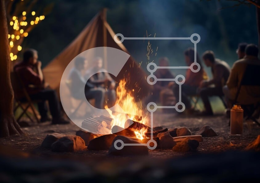 Υπάρχει δυνατότητα προσωποποίησης με δική σας φωτογραφία και προσαρμογής διαστάσεων κατόπιν παραγγελίας. Το συγεκεριμενο puzzle παρουσιαζει Η εικόνα απεικονίζει μια ομάδα ανθρώπων που κάθονται γύρω από μια ανοιχτή φωτιά στο δάσος. Υπάρχουν πολλές καρέκλες τοποθετημένες γύρω από τη φωτιά, υποδηλώνοντας ότι απολαμβάνουν το χρόνο τους μαζί σε εξωτερικούς χώρους. Μια σκηνή μπορεί να δει κανείς κοντά, που παρέχει σκιά