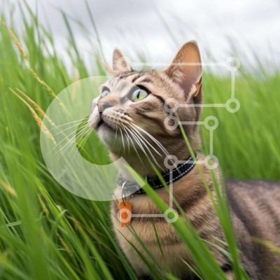 Υπάρχει δυνατότητα προσωποποίησης με δική σας φωτογραφία και προσαρμογής διαστάσεων κατόπιν παραγγελίας. Το συγεκεριμενο Puzzle 10x10 cm – 25 κομμ παρουσιαζει Η εικόνα απεικονίζει μια γάτα να κάθεται σε ψηλό γρασίδι, κοιτάζοντας ψηλά στον ουρανό. Η γάτα φορά ένα πορτοκαλί γιακά και φαίνεται να είναι περίεργη για το τι συμβαίνει γύρω της. Μπορεί να προσπαθεί να βρει το δρόμο του έξω από το γήπεδο ή