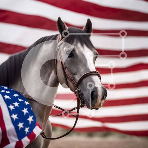 Υπάρχει δυνατότητα προσωποποίησης με δική σας φωτογραφία και προσαρμογής διαστάσεων κατόπιν παραγγελίας. Το συγεκεριμενο Puzzle 10x10 cm – 25 κομμ παρουσιαζει Η εικόνα δείχνει ένα όμορφο γκρίζο άλογο να στέκεται μπροστά από μια αμερικανική σημαία. Το άλογο φοράει το χαλινάρι του, υποδηλώνοντας τη χρήση του για ιππασία ή εκπαιδευτικούς σκοπούς. Επιπλέον, υπάρχουν και άλλα αντικείμενα, όπως καρφίτσε