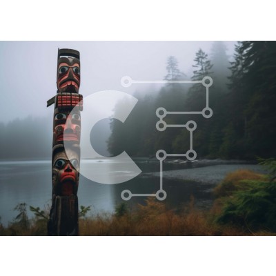 Υπάρχει δυνατότητα προσωποποίησης με δική σας φωτογραφία και προσαρμογής διαστάσεων κατόπιν παραγγελίας. Το συγεκεριμενο puzzle παρουσιαζει Η εικόνα παρουσιάζει ένα ξύλινο κοντάρι τοτέμ σε φυσικό περιβάλλον. Ο πόλος τοτέμ έχει δύο ζωγραφισμένες όψεις και είναι τοποθετημένος στο προσκήνιο, στραμμένος προς μια λίμνη ή ποτάμι. Γύρω από τον πόλο τοτέμ υπάρχουν πολλά δέντρα, υποδεικνύοντας τη σύνδεσή του με μια ιθαγενή