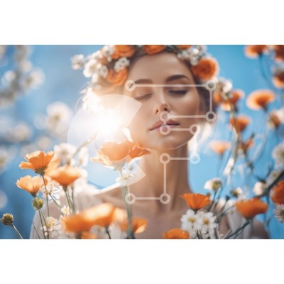 Υπάρχει δυνατότητα προσωποποίησης με δική σας φωτογραφία και προσαρμογής διαστάσεων κατόπιν παραγγελίας. Το συγεκεριμενο puzzle παρουσιαζει Αυτή η εικόνα δείχνει μια νεαρή γυναίκα στη μέση ενός χωραφιού με πορτοκαλί λουλούδια. Είναι στολισμένη με λουλούδια στα μαλλιά της και τα μάτια της είναι κλειστά, υποδηλώνοντας μια αίσθηση γαλήνης και εκτίμησης για την ομορφιά της φύσης. Τα ζωντανά πορτοκαλί άνθη προσφέρουν έ