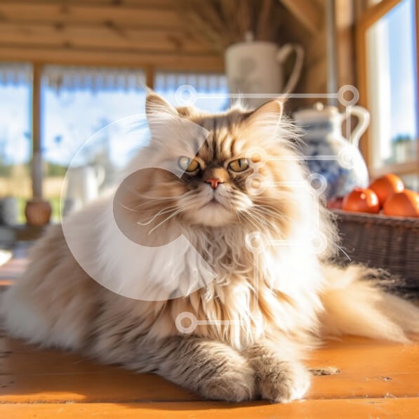 Υπάρχει δυνατότητα προσωποποίησης με δική σας φωτογραφία και προσαρμογής διαστάσεων κατόπιν παραγγελίας. Το συγεκεριμενο Puzzle 10x10 cm – 25 κομμ παρουσιαζει Αυτή η εικόνα παρουσιάζει μια αξιολάτρευτη μακρυμάλλη γάτα που κάθεται σε ένα ξύλινο τραπέζι μπροστά από ένα παράθυρο με θέα στον κήπο. Η γάτα κοιτάζει κατευθείαν την κάμερα με λαμπερά και περίεργα μάτια. Υπάρχει ένα βάζο με λουλούδια στο τρ