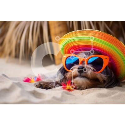 Υπάρχει δυνατότητα προσωποποίησης με δική σας φωτογραφία και προσαρμογής διαστάσεων κατόπιν παραγγελίας. Το συγεκεριμενο puzzle παρουσιαζει Η εικόνα δείχνει ένα μικρό σκυλί που φοράει πολύχρωμα γυαλιά ηλίου και είναι ξαπλωμένο στην άμμο. Ο σκύλος είναι ντυμένος για την καλοκαιρινή σεζόν, κάτι που θα μπορούσε να είναι ένδειξη ότι είναι έτοιμος να περάσει λίγο χρόνο στον ήλιο. Μπορεί επίσης να υποδηλώνει ότι ο σκύλο