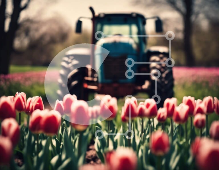 Υπάρχει δυνατότητα προσωποποίησης με δική σας φωτογραφία και προσαρμογής διαστάσεων κατόπιν παραγγελίας. Το συγεκεριμενο puzzle παρουσιαζει Η εικόνα δείχνει ένα μπλε τρακτέρ παρκαρισμένο στη μέση μιας τεράστιας έκτασης ροζ τουλίπες, που πιθανότατα χρησιμοποιείται για την καλλιέργεια των λουλουδιών. Το τρακτέρ οδηγεί μέσα στο χωράφι, αφήνοντας ίχνη στο έδαφος. Η σκηνή μπορεί επίσης να περιλαμβάνει άλλο αγροτικό εξο