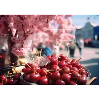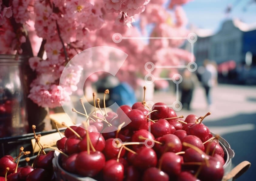 Υπάρχει δυνατότητα προσωποποίησης με δική σας φωτογραφία και προσαρμογής διαστάσεων κατόπιν παραγγελίας. Το συγεκεριμενο puzzle παρουσιαζει Η εικόνα δείχνει ένα καλάθι γεμάτο με κεράσια στο πρώτο πλάνο, που περιβάλλεται από ροζ άνθη κερασιάς. Οι άνθρωποι είναι ορατοί να περπατούν στην περιοχή, υποδηλώνοντας μια ατμόσφαιρα εκδήλωσης ή φεστιβάλ. Μερικά άτομα κάθονται κοντά στο καλάθι, απολαμβάνοντας πιθανώς τα κεράσ