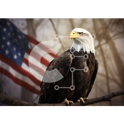 Υπάρχει δυνατότητα προσωποποίησης με δική σας φωτογραφία και προσαρμογής διαστάσεων κατόπιν παραγγελίας. Το συγεκεριμενο puzzle παρουσιαζει Αυτή η εικόνα δείχνει έναν μεγαλοπρεπή αετό σκαρφαλωμένο σε ένα κλαδί δέντρου με την αμερικανική σημαία στο φόντο. Ο αετός φαίνεται χαλαρός και άνετος, απολαμβάνοντας πιθανώς το περιβάλλον του ή παρατηρώντας κάτι σημαντικό, όπως την αμερικανική σημαία ή τα γύρω δέντρα. Ένα μο