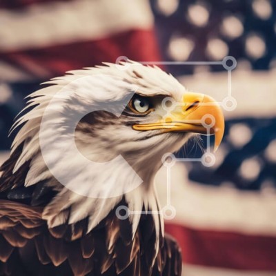 Υπάρχει δυνατότητα προσωποποίησης με δική σας φωτογραφία και προσαρμογής διαστάσεων κατόπιν παραγγελίας. Το συγεκεριμενο Puzzle 10x10 cm – 25 κομμ παρουσιαζει Η εικόνα παρουσιάζει ένα κοντινό πλάνο ενός αετού μπροστά από την αμερικανική σημαία. Το κεφάλι του πουλιού είναι γερμένο στο πλάι και το ράμφος του είναι ανοιχτό, υποδηλώνοντας ότι είναι σκαρφαλωμένο πάνω από κάτι. Φαίνεται επίσης να είναι