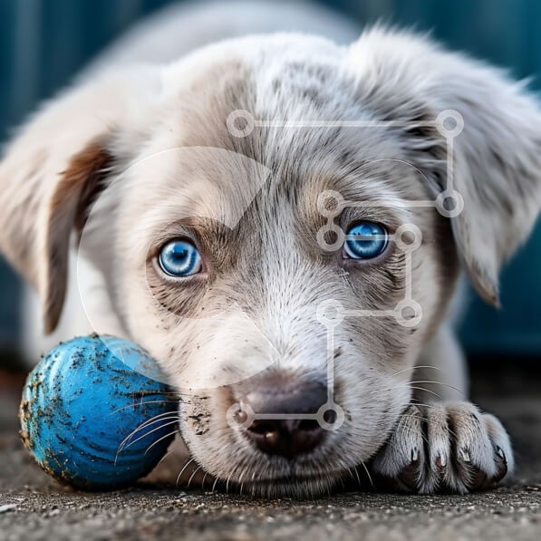Υπάρχει δυνατότητα προσωποποίησης με δική σας φωτογραφία και προσαρμογής διαστάσεων κατόπιν παραγγελίας. Το συγεκεριμενο Puzzle 10x10 cm – 25 κομμ παρουσιαζει Αυτή η εικόνα παρουσιάζει ένα αξιολάτρευτο κουτάβι με λαμπερά μπλε μάτια ξαπλωμένο στο έδαφος, κρατώντας μια μπλε μπάλα στο στόμα του. Το κουτάβι έχει μια παιχνιδιάρικη έκφραση και είναι βέβαιο ότι θα φέρει ένα χαμόγελο στα χείλη οποιουδήποτ