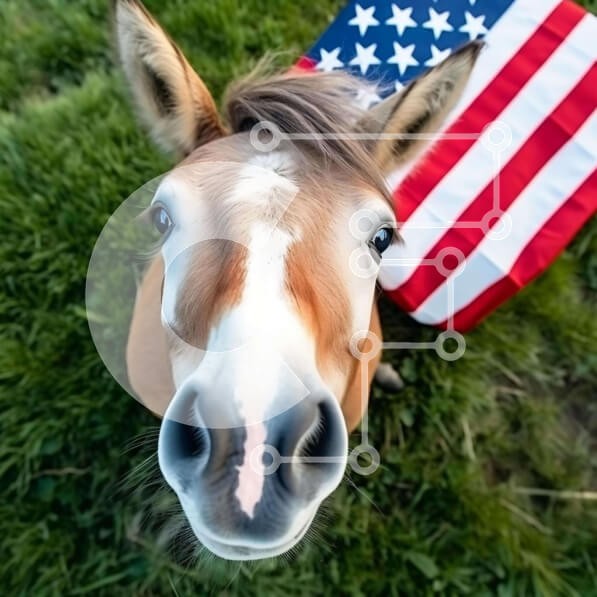 Υπάρχει δυνατότητα προσωποποίησης με δική σας φωτογραφία και προσαρμογής διαστάσεων κατόπιν παραγγελίας. Το συγεκεριμενο Puzzle 10x10 cm – 25 κομμ παρουσιαζει Η εικόνα απεικονίζει έναν καφέ γάιδαρο να στέκεται στο γρασίδι δίπλα σε μια αμερικανική σημαία. Το κεφάλι του γαϊδάρου είναι γερμένο προς την κάμερα και τα μάτια του είναι στραμμένα στη σημαία, υποδηλώνοντας ότι την κοιτάζει απευθείας. Μπορε