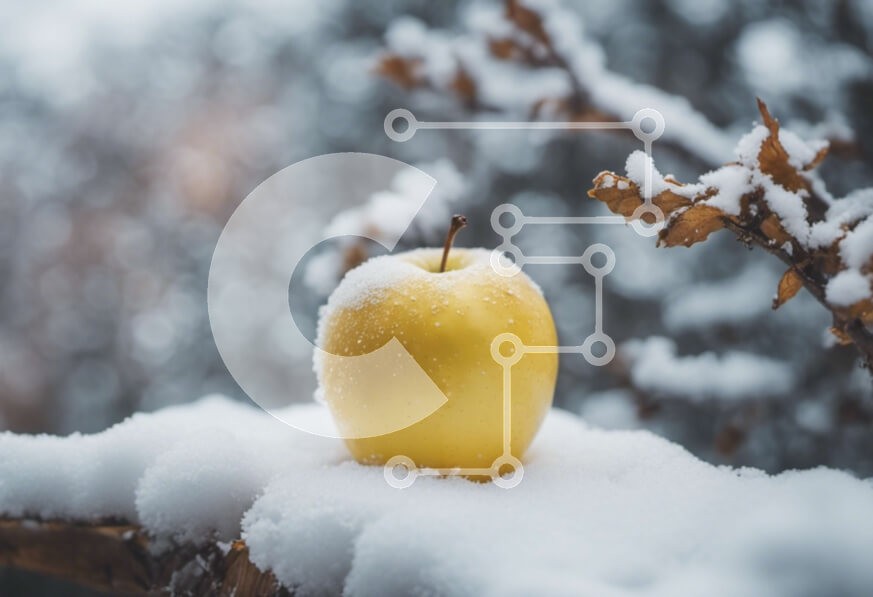 Υπάρχει δυνατότητα προσωποποίησης με δική σας φωτογραφία και προσαρμογής διαστάσεων κατόπιν παραγγελίας. Το συγεκεριμενο puzzle παρουσιαζει Αυτή η εικόνα παρουσιάζει ένα κίτρινο μήλο καλυμμένο με χιόνι, τοποθετημένο πάνω από ένα κλαδί καλυμμένο με χιόνι. Το μήλο φαίνεται φρέσκο και άψογο, πιθανότατα πρόσφατα συγκομισμένο. Το χιόνι προσφέρει μια όμορφη αντίθεση στο ζωηρό χρώμα του μήλου, δημιουργώντας μια οπτικά