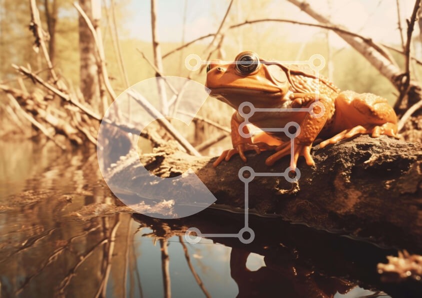 Υπάρχει δυνατότητα προσωποποίησης με δική σας φωτογραφία και προσαρμογής διαστάσεων κατόπιν παραγγελίας. Το συγεκεριμενο puzzle παρουσιαζει Η εικόνα δείχνει έναν πορτοκαλί βάτραχο που κάθεται σε ένα κούτσουρο στο νερό. Φαίνεται να ακουμπάει ή να σκαρφαλώνει πάνω από το κούτσουρο, κάτι που μπορεί να δείχνει ότι απολαμβάνει το περιβάλλον του. Υπάρχουν πολλά δέντρα και κλαδιά που περιβάλλουν τη λίμνη, υποδηλώνοντας ό