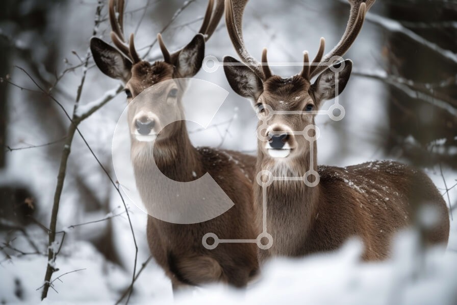 Υπάρχει δυνατότητα προσωποποίησης με δική σας φωτογραφία και προσαρμογής διαστάσεων κατόπιν παραγγελίας. Το συγεκεριμενο puzzle παρουσιαζει Αυτή η εικόνα απεικονίζει δύο ελάφια να στέκονται στο χιόνι, που περιβάλλονται από ένα χειμερινό τοπίο. Τα ελάφια φαίνονται ήρεμα και γαλήνια και το χιόνι στα δέντρα και το έδαφος προσθέτει στην ηρεμία της σκηνής. Ένα μοναδικό puzzle που συνδυάζει ποιότητα, αισθητική και εμπε