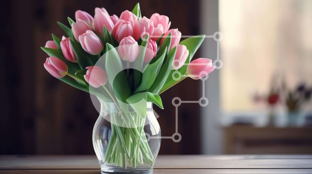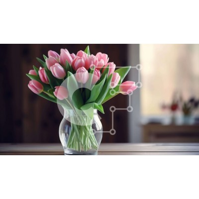 Υπάρχει δυνατότητα προσωποποίησης με δική σας φωτογραφία και προσαρμογής διαστάσεων κατόπιν παραγγελίας. Το συγεκεριμενο puzzle παρουσιαζει Η εικόνα παρουσιάζει ένα γυάλινο βάζο γεμάτο με ροζ τουλίπες, οι οποίες είναι τοποθετημένες πάνω από ένα άδειο ξύλινο τραπέζι. Υπάρχει επίσης κάποιο είδος αντικειμένου στο φόντο, όπως στυλό ή μολύβια, που θα μπορούσαν να χρησιμοποιηθούν για τη διακόσμηση του τραπεζιού. Ένα μο