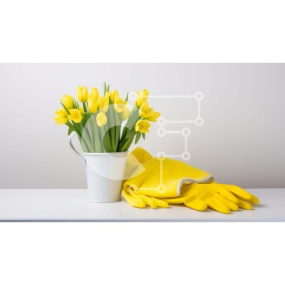 Υπάρχει δυνατότητα προσωποποίησης με δική σας φωτογραφία και προσαρμογής διαστάσεων κατόπιν παραγγελίας. Το συγεκεριμενο puzzle παρουσιαζει Αυτή η εικόνα παρουσιάζει ένα λευκό βάζο με ζωηρές κίτρινες τουλίπες και ένα ζευγάρι κίτρινα γάντια κηπουρικής τοποθετημένα στην κορυφή. Ένα άδειο φλιτζάνι στο τραπέζι ολοκληρώνει τη σκηνή, προσφέροντας ευέλικτη χρήση για να κρατάτε διάφορα αντικείμενα. Ένα μοναδικό puzzle πο