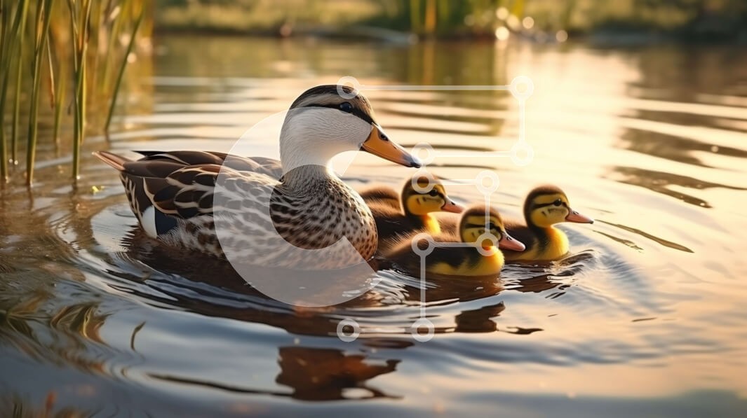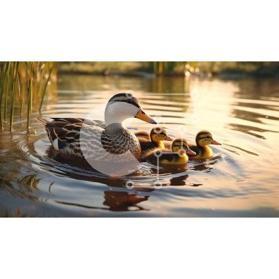 Υπάρχει δυνατότητα προσωποποίησης με δική σας φωτογραφία και προσαρμογής διαστάσεων κατόπιν παραγγελίας. Το συγεκεριμενο puzzle παρουσιαζει Αυτή η εικόνα δείχνει μια μητέρα πάπια που κολυμπά σε ήρεμα νερά, με τα τρία παπάκια της να την ακολουθούν από κοντά. Η μητέρα πάπια απεικονίζεται μπροστά με τα φτερά της ανοιχτά και το ράμφος ανοιχτό, ενώ τα μικρότερα παπάκια ακολουθούν πίσω. Το γαλήνιο σκηνικό ενισχύεται από