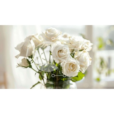 Υπάρχει δυνατότητα προσωποποίησης με δική σας φωτογραφία και προσαρμογής διαστάσεων κατόπιν παραγγελίας. Το συγεκεριμενο puzzle παρουσιαζει Η εικόνα παρουσιάζει ένα γυάλινο βάζο γεμάτο με λευκά τριαντάφυλλα, το οποίο φαίνεται να κάθεται στο τραπέζι μπροστά από ένα ανοιχτό παράθυρο. Υπάρχουν πολλά φυτά και λουλούδια που περιβάλλουν το βάζο, γεγονός που υποδηλώνει ότι μπορεί να χρησιμοποιηθεί για διακοσμητικούς σκοπ