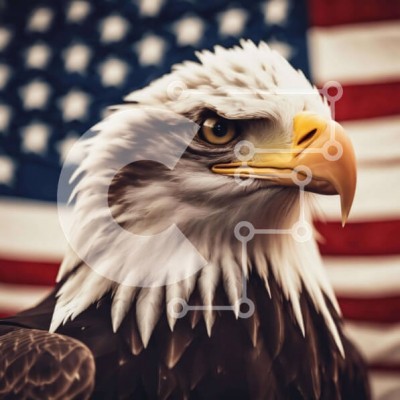 Υπάρχει δυνατότητα προσωποποίησης με δική σας φωτογραφία και προσαρμογής διαστάσεων κατόπιν παραγγελίας. Το συγεκεριμενο Puzzle 10x10 cm – 25 κομμ παρουσιαζει Η εικόνα παρουσιάζει ένα κοντινό πλάνο ενός φαλακρού αετού μπροστά από την αμερικανική σημαία. Το κεφάλι του πουλιού γέρνει ελαφρά στο πλάι, υποδηλώνοντας ότι είναι στραμμένο μακριά από την κάμερα. Φαίνεται επίσης να κοιτάζει απευθείας τον θ