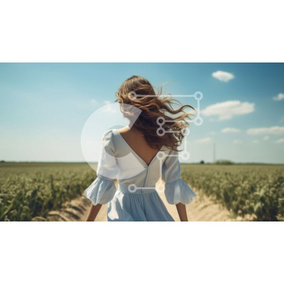 Υπάρχει δυνατότητα προσωποποίησης με δική σας φωτογραφία και προσαρμογής διαστάσεων κατόπιν παραγγελίας. Το συγεκεριμενο puzzle παρουσιαζει Αυτή η εικόνα παρουσιάζει μια γυναίκα που φορά ένα λευκό φόρεμα, που περπατά κατά μήκος ενός χωματόδρομου σε ένα απέραντο χωράφι με σιτάρι. Τα μακριά, κυματιστά μαλλιά της ρέουν πίσω της καθώς κοιτάζει κάτω στο έδαφος ενώ περπατάει. Ο ουρανός πάνω είναι καθαρός και μπλε, παρέχ
