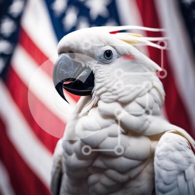 Υπάρχει δυνατότητα προσωποποίησης με δική σας φωτογραφία και προσαρμογής διαστάσεων κατόπιν παραγγελίας. Το συγεκεριμενο Puzzle 10x10 cm – 25 κομμ παρουσιαζει Η εικόνα δείχνει έναν λευκό παπαγάλο να στέκεται μπροστά από μια αμερικανική σημαία. Το κεφάλι του πουλιού είναι γερμένο στο πλάι και το ράμφος του είναι ανοιχτό, υποδηλώνοντας ότι είναι σκαρφαλωμένο πάνω από κάτι. Μπορεί επίσης να ακουμπάει