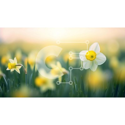 Υπάρχει δυνατότητα προσωποποίησης με δική σας φωτογραφία και προσαρμογής διαστάσεων κατόπιν παραγγελίας. Το συγεκεριμενο puzzle παρουσιαζει Η εικόνα δείχνει ένα χωράφι με κίτρινους και λευκούς νάρκισσους σε πρώτο πλάνο, συνοδευόμενο από πολλά άλλα ανθισμένα λουλούδια διάσπαρτα σε όλο το χωράφι. Το φόντο είναι θολό, υποδεικνύοντας ότι η φωτογραφία πιθανότατα τραβήχτηκε κατά το λυκόφως ή τις πρώτες πρωινές ώρες. Έν