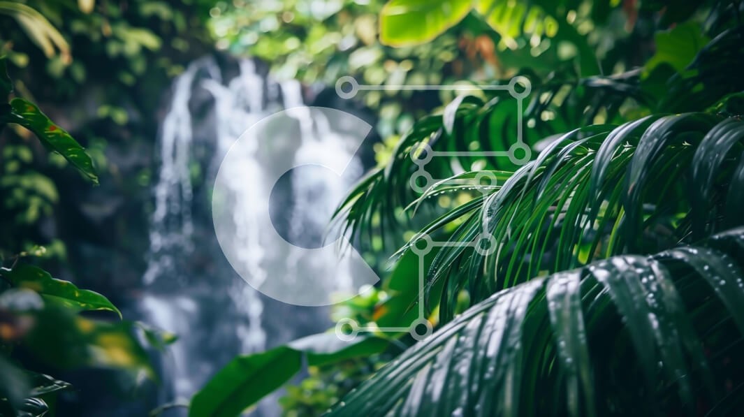 Υπάρχει δυνατότητα προσωποποίησης με δική σας φωτογραφία και προσαρμογής διαστάσεων κατόπιν παραγγελίας. Το συγεκεριμενο puzzle παρουσιαζει Η εικόνα απεικονίζει έναν καταρράκτη στη ζούγκλα, με καταπράσινο φύλλωμα να τον περιβάλλει. Ο καταρράκτης είναι ορατός από πολλές γωνίες, υποδηλώνοντας ότι μπορεί να βρίσκεται κάπου μέσα στο δάσος. Διάφορα φυτά και δέντρα, όπως φοίνικες, φοίνικες καρύδας και άλλα τροπικά φυτά,