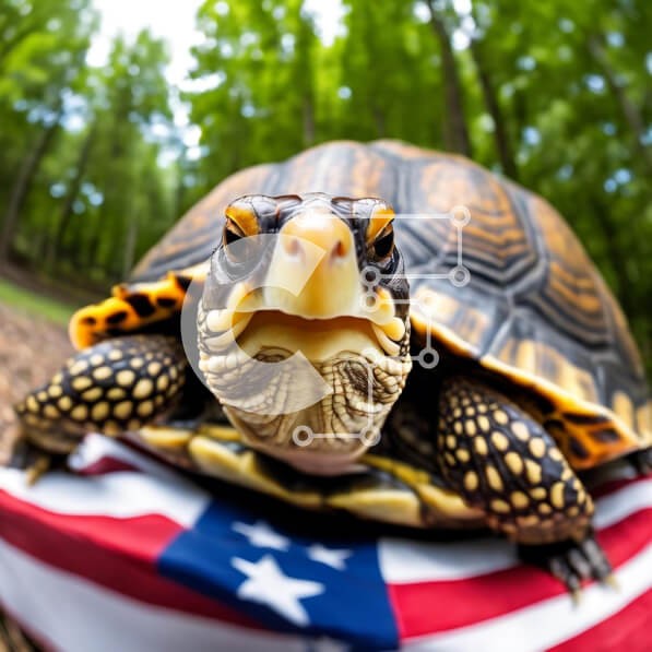 Υπάρχει δυνατότητα προσωποποίησης με δική σας φωτογραφία και προσαρμογής διαστάσεων κατόπιν παραγγελίας. Το συγεκεριμενο Puzzle 10x10 cm – 25 κομμ παρουσιαζει Αυτή η εικόνα παρουσιάζει μια χελώνα να κάθεται σε μια αμερικανική σημαία στο δάσος, με το κεφάλι της να γέρνει προς την κάμερα. Η χελώνα φαίνεται να κοιτάζει το διάστημα, επιδεικνύοντας την περίεργη φύση της. Ένα μοναδικό Puzzle 10x10 cm –