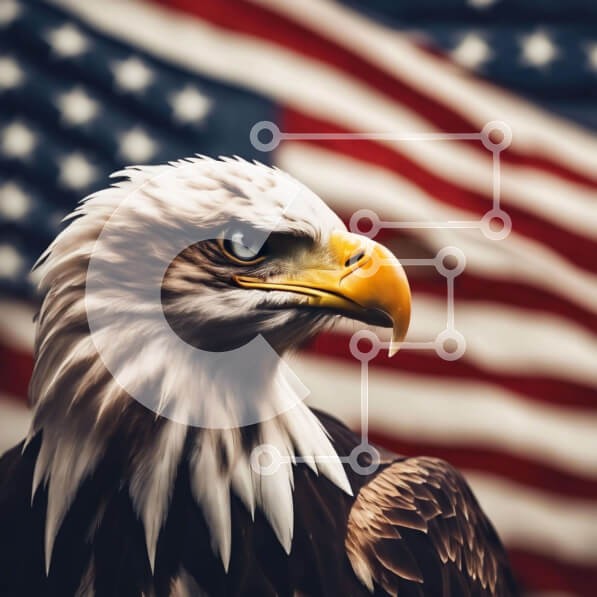 Υπάρχει δυνατότητα προσωποποίησης με δική σας φωτογραφία και προσαρμογής διαστάσεων κατόπιν παραγγελίας. Το συγεκεριμενο Puzzle 10x10 cm – 25 κομμ παρουσιαζει Η εικόνα δείχνει έναν φαλακρό αετό να στέκεται μπροστά από μια αμερικανική σημαία. Το κεφάλι του πουλιού είναι γερμένο στο πλάι, υποδηλώνοντας ότι είναι στραμμένο μακριά από την κάμερα. Αυτό θα μπορούσε να υποδηλώνει ότι το πουλί κοιτάζει κά