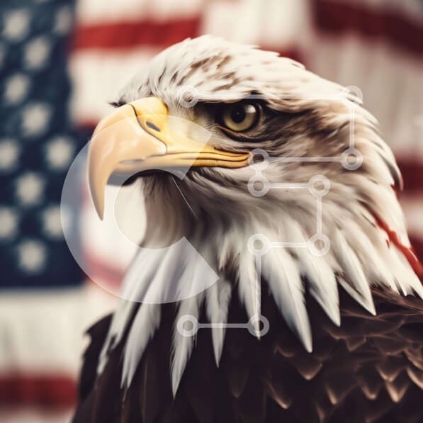 Υπάρχει δυνατότητα προσωποποίησης με δική σας φωτογραφία και προσαρμογής διαστάσεων κατόπιν παραγγελίας. Το συγεκεριμενο Puzzle 10x10 cm – 25 κομμ παρουσιαζει Η εικόνα παρουσιάζει ένα κοντινό πλάνο ενός αετού μπροστά από την αμερικανική σημαία. Το κεφάλι του πουλιού είναι γερμένο στο πλάι και το ράμφος του είναι ανοιχτό, υποδηλώνοντας ότι είναι σκαρφαλωμένο πάνω από κάτι. Φαίνεται επίσης να είναι