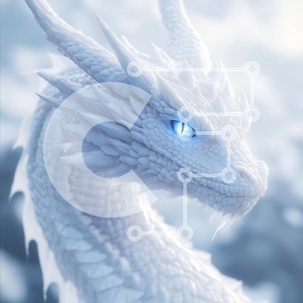 Υπάρχει δυνατότητα προσωποποίησης με δική σας φωτογραφία και προσαρμογής διαστάσεων κατόπιν παραγγελίας. Το συγεκεριμενο Puzzle 10x10 cm – 25 κομμ παρουσιαζει Αυτή η εικόνα παρουσιάζει έναν μεγαλοπρεπή λευκό δράκο με περίπλοκα λέπια και εντυπωσιακά μπλε μάτια. Το κεφάλι του δράκου εμφανίζεται σε περίοπτη θέση, επιδεικνύοντας τα λεπτομερή χαρακτηριστικά του, όπως αιχμηρά κέρατα και μακρύ λαιμό. Το