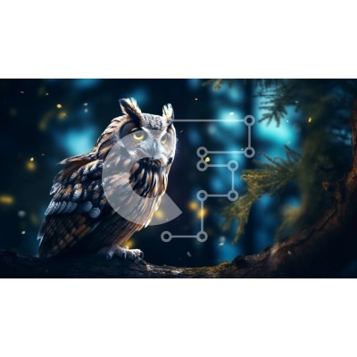 Υπάρχει δυνατότητα προσωποποίησης με δική σας φωτογραφία και προσαρμογής διαστάσεων κατόπιν παραγγελίας. Το συγεκεριμενο puzzle παρουσιαζει Αυτή η εικόνα απεικονίζει μια μαγευτική σκηνή μιας κουκουβάγιας σκαρφαλωμένης σε ένα κλαδί δέντρου σε ένα σκοτεινό δάσος τη νύχτα. Η κουκουβάγια έχει καφέ φτερά, κίτρινα μάτια και ράμφος. Τα φτερά του απλώνονται και τα νύχια του πιάνουν το κλαδί. Το φόντο δείχνει ένα δάσος με