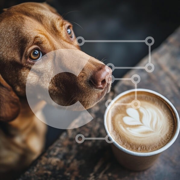 Υπάρχει δυνατότητα προσωποποίησης με δική σας φωτογραφία και προσαρμογής διαστάσεων κατόπιν παραγγελίας. Το συγεκεριμενο Puzzle 10x10 cm – 25 κομμ παρουσιαζει Η εικόνα παρουσιάζει ένα κοντινό πλάνο ενός καφέ σκύλου με ένα γυαλιστερό παλτό, που κοιτάζει με περιέργεια ένα φλιτζάνι καφέ τοποθετημένο σε ένα ξύλινο τραπέζι. Τα εκφραστικά μάτια του σκύλου είναι στραμμένα στον καφέ, ο οποίος έχει ένα όμο