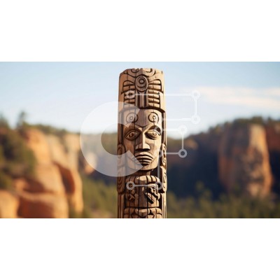Υπάρχει δυνατότητα προσωποποίησης με δική σας φωτογραφία και προσαρμογής διαστάσεων κατόπιν παραγγελίας. Το συγεκεριμενο puzzle παρουσιαζει Η εικόνα δείχνει έναν ξύλινο στύλο τοτέμ με ένα ινδικό πρόσωπο, σε φόντο μεγαλοπρεπών βουνών και καταπράσινων δέντρων. Ο πόλος τοτέμ μπορεί να κατασκευάστηκε από μια ιθαγενή φυλή της περιοχής, προσθέτοντας στην ιστορική και πολιτιστική σημασία της σκηνής. Ένα μοναδικό puzzle