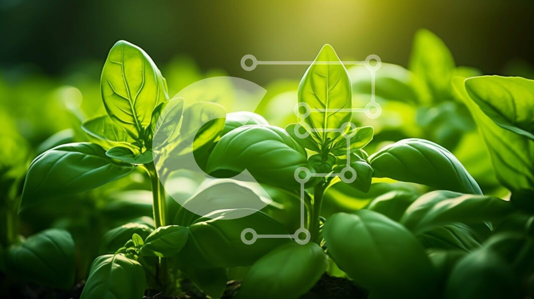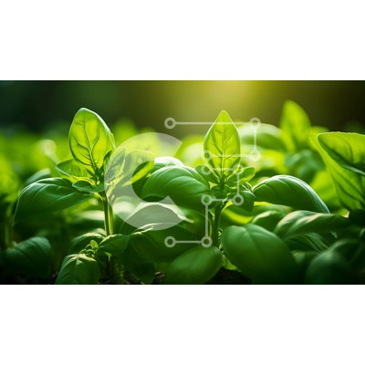 Υπάρχει δυνατότητα προσωποποίησης με δική σας φωτογραφία και προσαρμογής διαστάσεων κατόπιν παραγγελίας. Το συγεκεριμενο puzzle παρουσιαζει Αυτή η εικόνα είναι μια κοντινή άποψη των φρέσκων φύλλων βασιλικού που αναπτύσσονται σε έναν κήπο. Τα φύλλα είναι λαμπερά πράσινα και φαίνονται υγιή και ζωντανά. Η εικόνα λαμβάνεται από χαμηλή γωνία, κοιτάζοντας ψηλά τα φυτά βασιλικού, τα οποία αναπτύσσονται σε ένα κομμάτι χώμ