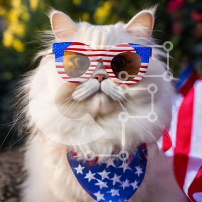 Υπάρχει δυνατότητα προσωποποίησης με δική σας φωτογραφία και προσαρμογής διαστάσεων κατόπιν παραγγελίας. Το συγεκεριμενο Puzzle 10x10 cm – 25 κομμ παρουσιαζει Αυτή η εικόνα παρουσιάζει μια λευκή γάτα που φοράει γυαλιά ηλίου και μια μπαντάνα με αμερικανική σημαία. Η γάτα κάθεται στο έδαφος με το κεφάλι της γερμένο στο πλάι, υποδηλώνοντας περιέργεια ή προσοχή σε κάτι που βρίσκεται μακριά. Το βλέμμα