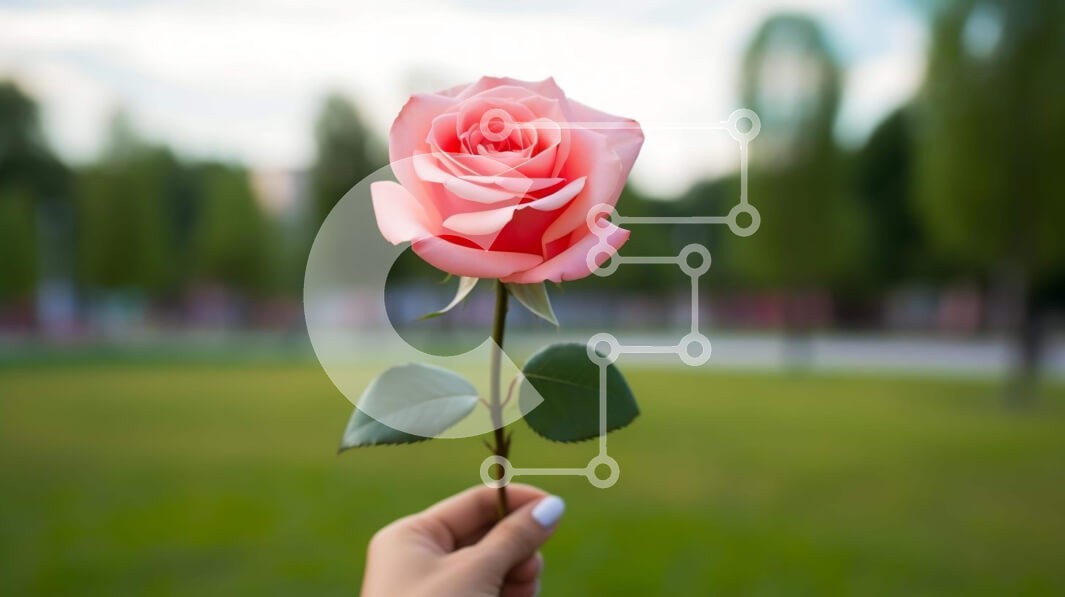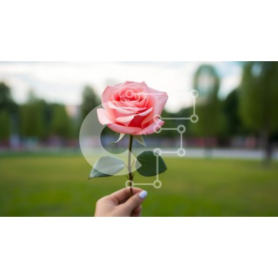 Υπάρχει δυνατότητα προσωποποίησης με δική σας φωτογραφία και προσαρμογής διαστάσεων κατόπιν παραγγελίας. Το συγεκεριμενο puzzle παρουσιαζει Η εικόνα δείχνει ένα ροζ τριαντάφυλλο που κρατιέται στο χέρι κάποιου, με φόντο ένα ανοιχτό χωράφι με δέντρα και πράσινο. Το χέρι του ατόμου είναι τοποθετημένο με τρόπο που κάνει το τριαντάφυλλο να φαίνεται σαν να επιπλέει στον αέρα. Πολλά άλλα λουλούδια είναι διάσπαρτα στην πε