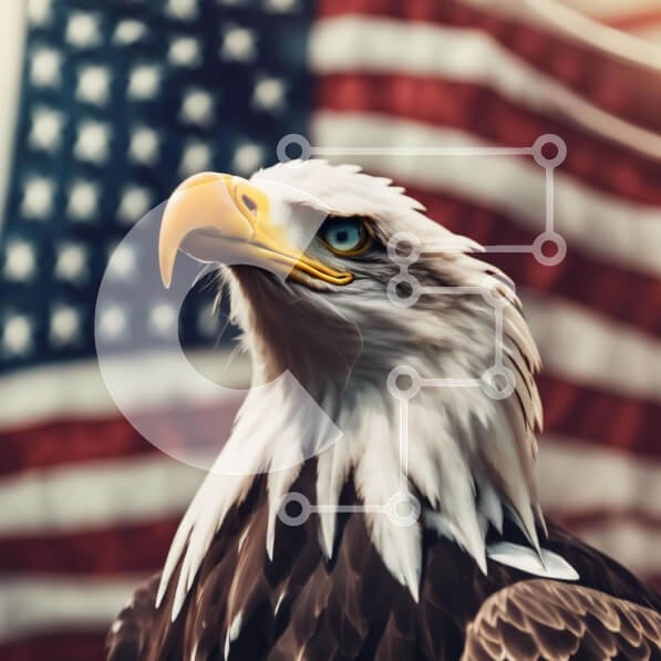 Υπάρχει δυνατότητα προσωποποίησης με δική σας φωτογραφία και προσαρμογής διαστάσεων κατόπιν παραγγελίας. Το συγεκεριμενο Puzzle 10x10 cm – 25 κομμ παρουσιαζει Η εικόνα δείχνει έναν φαλακρό αετό να στέκεται μπροστά από μια αμερικανική σημαία. Το μεγάλο ράμφος του πουλιού εμφανίζεται σε περίοπτη θέση και φαίνεται να είναι σκαρφαλωμένο στην κορυφή της σημαίας, με το κεφάλι του να γέρνει προς το μέρος