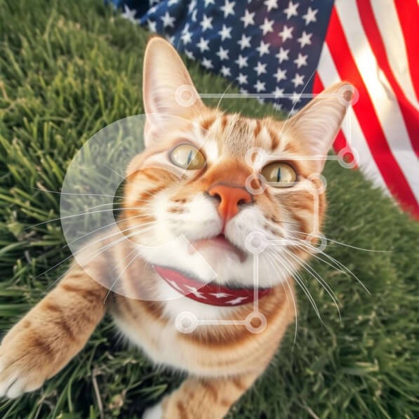 Υπάρχει δυνατότητα προσωποποίησης με δική σας φωτογραφία και προσαρμογής διαστάσεων κατόπιν παραγγελίας. Το συγεκεριμενο Puzzle 10x10 cm – 25 κομμ παρουσιαζει Η εικόνα δείχνει μια γάτα να κάθεται στο γρασίδι με μια αμερικανική σημαία στο βάθος. Η γάτα κοιτάζει ψηλά στην κάμερα, υποδηλώνοντας ότι είναι περίεργη για το περιβάλλον της. Ένα μοναδικό Puzzle 10x10 cm – 25 κομμπου συνδυάζει ποιότητα, αι