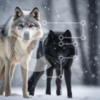 Υπάρχει δυνατότητα προσωποποίησης με δική σας φωτογραφία και προσαρμογής διαστάσεων κατόπιν παραγγελίας. Το συγεκεριμενο Puzzle 10x10 cm – 25 κομμ παρουσιαζει Αυτή η εικόνα παρουσιάζει δύο λύκους να στέκονται στο χιόνι, ο ένας μαύρος και ο άλλος γκρι. Ο λύκος στα αριστερά είναι μεγαλύτερος, υποδηλώνοντας μεγαλύτερη δύναμη και δύναμη καθώς αντικρίζουν ο ένας τον άλλον. Ένα μοναδικό Puzzle 10x10 cm