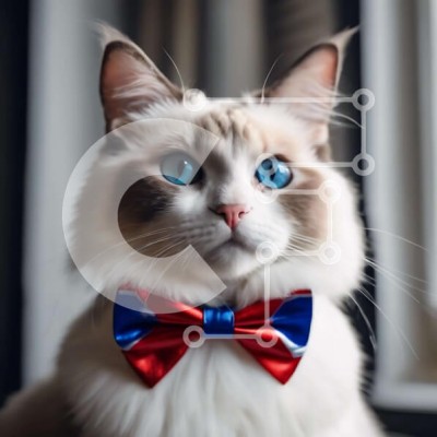 Υπάρχει δυνατότητα προσωποποίησης με δική σας φωτογραφία και προσαρμογής διαστάσεων κατόπιν παραγγελίας. Το συγεκεριμενο Puzzle 10x10 cm – 25 κομμ παρουσιαζει Η εικόνα απεικονίζει μια λευκή και καφέ γάτα με μπλε μάτια που κάθεται μπροστά σε ένα ανοιχτό παράθυρο. Η γάτα φοράει κόκκινες, λευκές και μπλε ρίγες στο παπιγιόν της, κάτι που προσθέτει στη συνολική ελκυστικότητα της εικόνας. Φαίνεται επίση