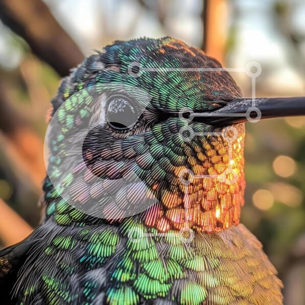 Υπάρχει δυνατότητα προσωποποίησης με δική σας φωτογραφία και προσαρμογής διαστάσεων κατόπιν παραγγελίας. Το συγεκεριμενο Puzzle 10x10 cm – 25 κομμ παρουσιαζει Αυτή η εικόνα παρουσιάζει ένα κοντινό πλάνο ενός κολιμπρί, που δείχνει τα ιριδίζοντα φτερά του που λαμπυρίζουν σε διάφορες αποχρώσεις του πράσινου, του μωβ και του χρυσού. Το μάτι του πουλιού είναι σκοτεινό και λαμπερό, αιχμαλωτίζοντας όμορφ