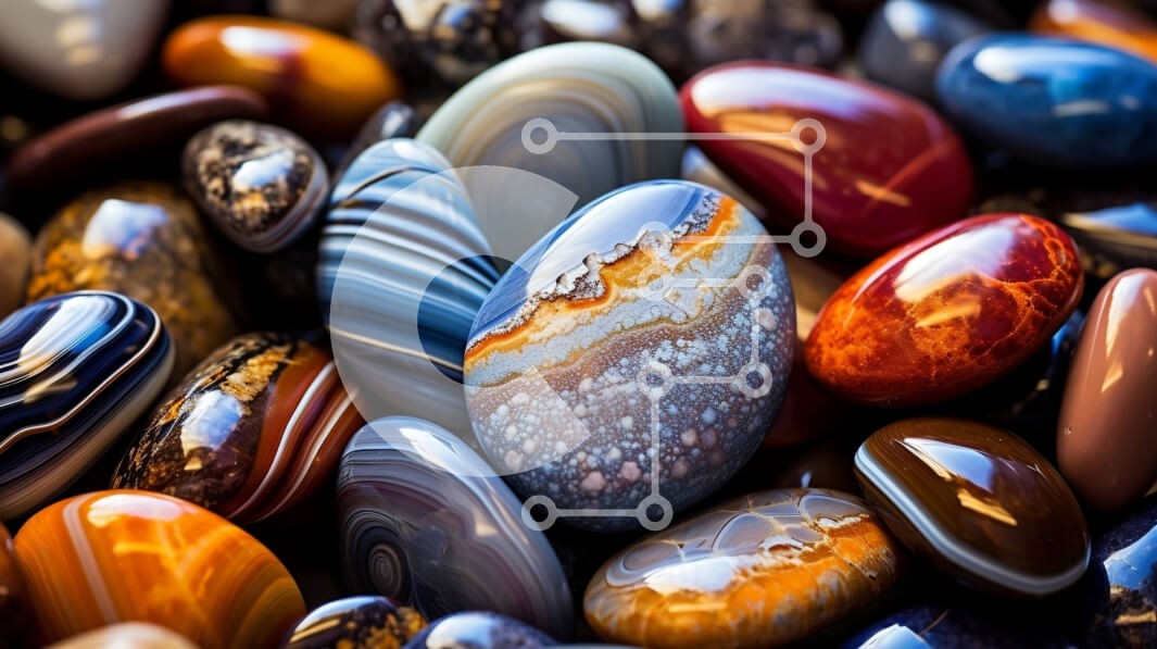 Υπάρχει δυνατότητα προσωποποίησης με δική σας φωτογραφία και προσαρμογής διαστάσεων κατόπιν παραγγελίας. Το συγεκεριμενο puzzle παρουσιαζει Αυτή η εικόνα παρουσιάζει μια ομάδα πολύχρωμων βράχων διατεταγμένων σε ένα σωρό. Τα πετρώματα είναι κατασκευασμένα από διαφορετικά ορυκτά και έχουν μια γυαλιστερή, γυαλιστερή εμφάνιση. Μερικοί βράχοι έχουν περίπλοκα σχέδια, ενώ άλλοι είναι πιο ομοιόμορφοι στο χρώμα και την υφή