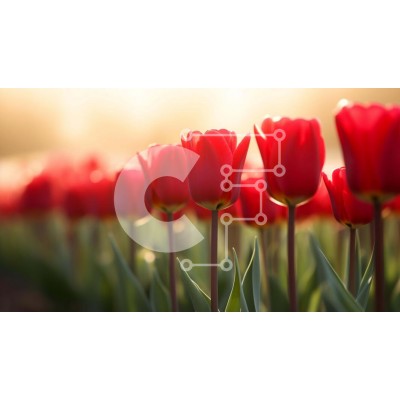 Υπάρχει δυνατότητα προσωποποίησης με δική σας φωτογραφία και προσαρμογής διαστάσεων κατόπιν παραγγελίας. Το συγεκεριμενο puzzle παρουσιαζει Η εικόνα παρουσιάζει μια σειρά από ανθισμένες κόκκινες τουλίπες, με τον ήλιο να λάμπει έντονα πίσω τους. Υπάρχουν πολλές σειρές λουλουδιών που φαίνεται να αναπτύσσονται έξω από το έδαφος, γεγονός που μπορεί να υποδηλώνει ότι αποτελούν μέρος μιας συνεχιζόμενης περιόδου ανθοφορί