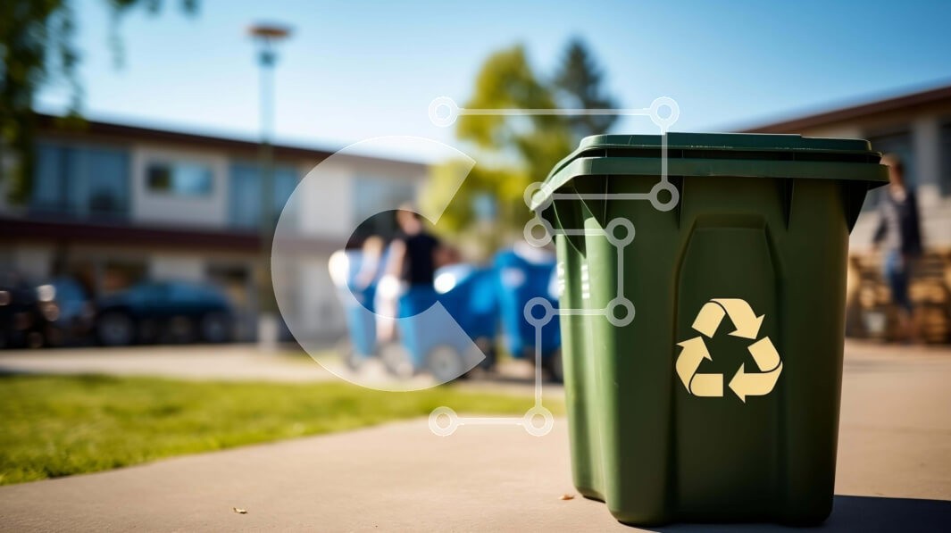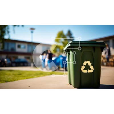 Υπάρχει δυνατότητα προσωποποίησης με δική σας φωτογραφία και προσαρμογής διαστάσεων κατόπιν παραγγελίας. Το συγεκεριμενο puzzle παρουσιαζει Αυτή η εικόνα δείχνει έναν πράσινο κάδο ανακύκλωσης τοποθετημένο στο πεζοδρόμιο μπροστά από μια πολυκατοικία. Κοντά στον κάδο φαίνονται άνθρωποι να περπατούν, υποδεικνύοντας τη χρήση του για τη συλλογή ανακυκλώσιμων. Η γύρω περιοχή περιλαμβάνει επίσης αρκετούς κάδους απορριμμά