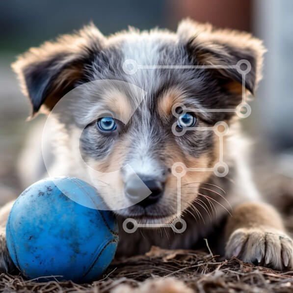 | Όνομα Προϊόντος | Intra Συλλεκτικό Ξύλινο Παζλ Plywood 4mm - Χαριτωμένη εικόνα ενός κουταβιού με μπλε μάτια με μια μπλε μπάλα Σε Ξύλινο Κουτί - Διαστάσεις: 10x10 cm – 25 κομμάτια |