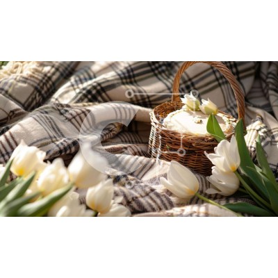 Υπάρχει δυνατότητα προσωποποίησης με δική σας φωτογραφία και προσαρμογής διαστάσεων κατόπιν παραγγελίας. Το συγεκεριμενο puzzle παρουσιαζει Η εικόνα δείχνει ένα καλάθι γεμάτο με λευκές τουλίπες τοποθετημένες σε μια παλιά καρό κουβέρτα. Ένα μικρό κέικ περιλαμβάνεται στο καλάθι, υποδεικνύοντας ότι είναι μέρος της διάταξης. Σε κοντινή απόσταση υπάρχει ένα σνακ ή ένα φαγητό όπως ψωμί ή μπισκότα. Ένα μοναδικό puzzle π