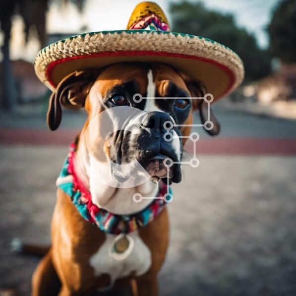 Υπάρχει δυνατότητα προσωποποίησης με δική σας φωτογραφία και προσαρμογής διαστάσεων κατόπιν παραγγελίας. Το συγεκεριμενο Puzzle 10x10 cm – 25 κομμ παρουσιαζει Ένας καφέ σκύλος μπόξερ εμφανίζεται σε αυτή την εικόνα, φορώντας μια αυθεντική μεξικάνικη σομπρέρο. Ο σκύλος κάθεται στο έδαφος με το κεφάλι του να γέρνει ελαφρά στο πλάι, δίνοντάς του μια αξιολάτρευτη και περίεργη έκφραση. Φαίνεται να κοιτά