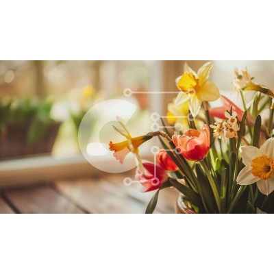 Υπάρχει δυνατότητα προσωποποίησης με δική σας φωτογραφία και προσαρμογής διαστάσεων κατόπιν παραγγελίας. Το συγεκεριμενο puzzle παρουσιαζει Αυτή η εικόνα παρουσιάζει ένα βάζο γεμάτο με πολύχρωμα λουλούδια, όπως νάρκισσους, τουλίπες και μαργαρίτες. Τα λουλούδια τοποθετούνται μπροστά από ένα ανοιχτό παράθυρο, υποδηλώνοντας ότι μπορεί να ανθίζουν αυτή την εποχή του χρόνου. Επιπλέον, υπάρχει λίγο πράσινο γύρω από το β