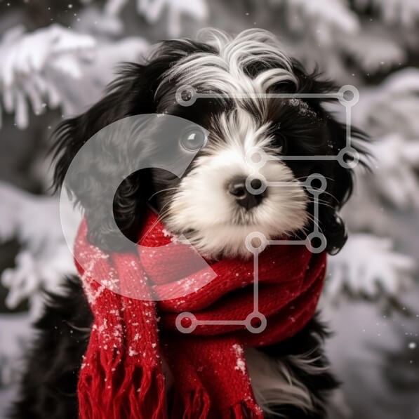 Υπάρχει δυνατότητα προσωποποίησης με δική σας φωτογραφία και προσαρμογής διαστάσεων κατόπιν παραγγελίας. Το συγεκεριμενο Puzzle 10x10 cm – 25 κομμ παρουσιαζει Αυτή η εικόνα παρουσιάζει ένα χαριτωμένο κουτάβι με ασπρόμαυρη γούνα, που φορά ένα κόκκινο φουλάρι σε ένα χιονισμένο φόντο. Τα μεγάλα, εκφραστικά μάτια και το χνουδωτό τρίχωμα του κουταβιού δημιουργούν μια αξιολάτρευτη σκηνή που αιχμαλωτίζει